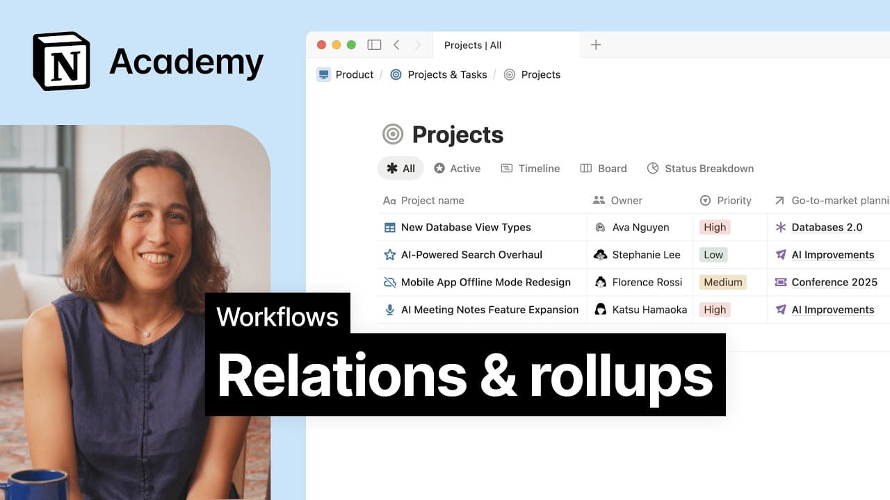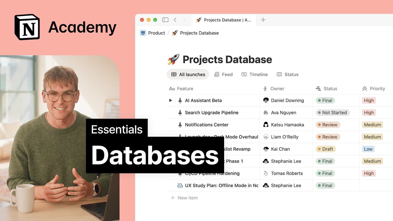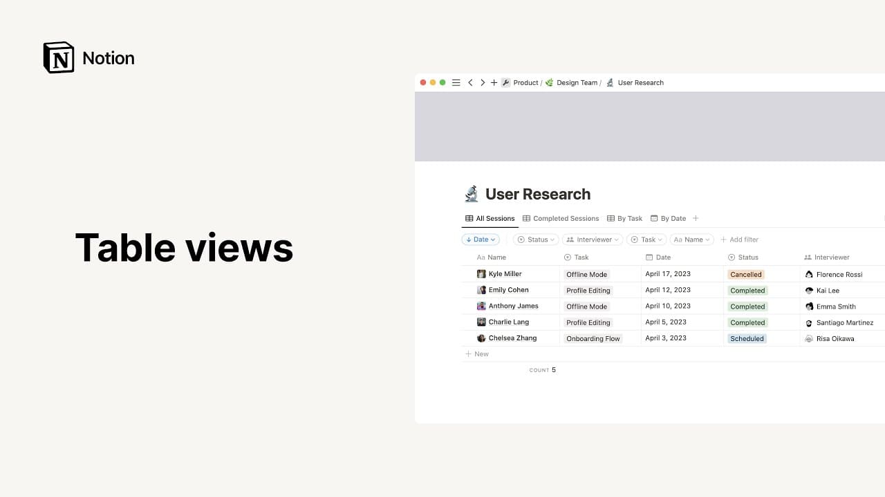 資料庫是 Notion 頁面的集合,可幫助你以多種方式整理資訊。有著多種資料庫瀏覽模式可供選擇,你能控制如何顯示和搜尋內容。