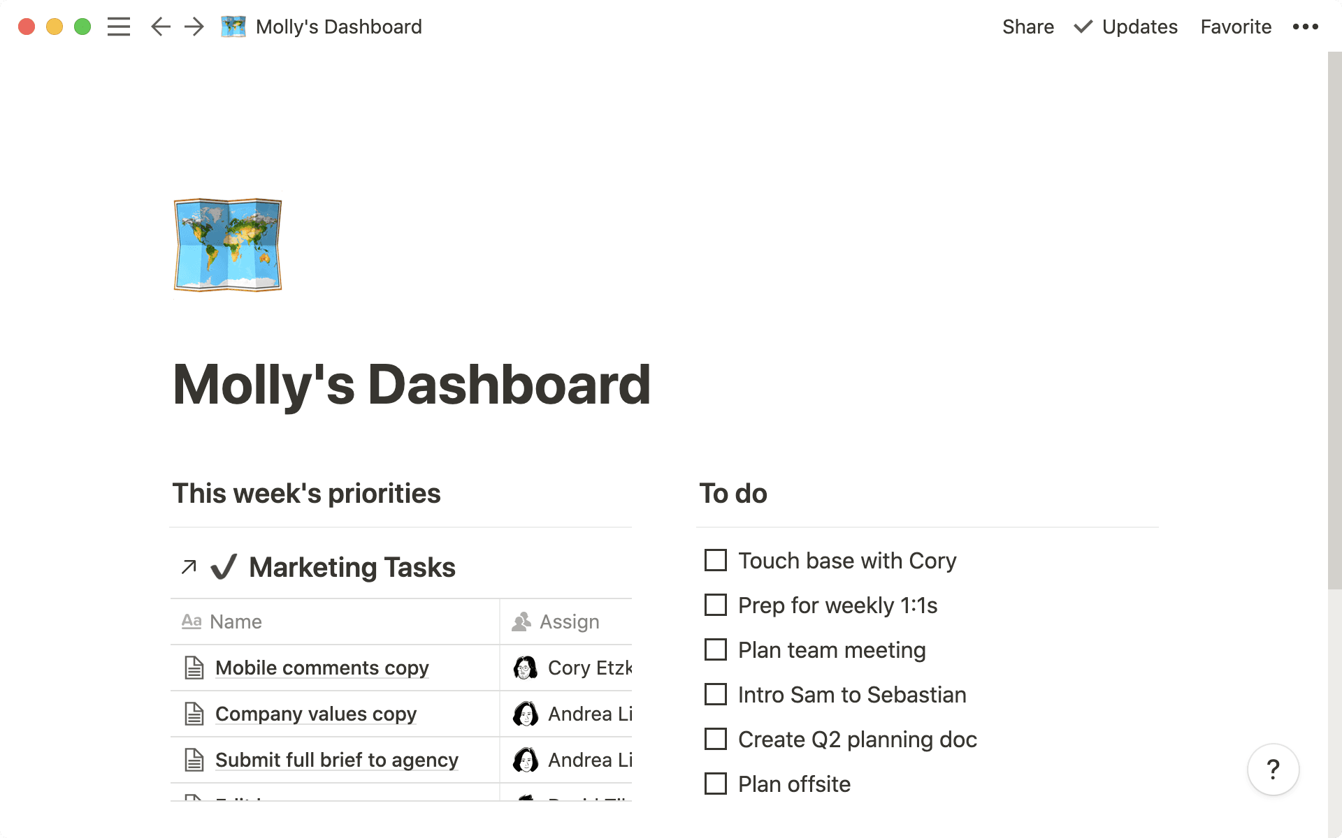 無論是想查看資訊概覽,還是深入了解細節,你都能在同一個 Notion 專業頁面中取得所有所需信息。